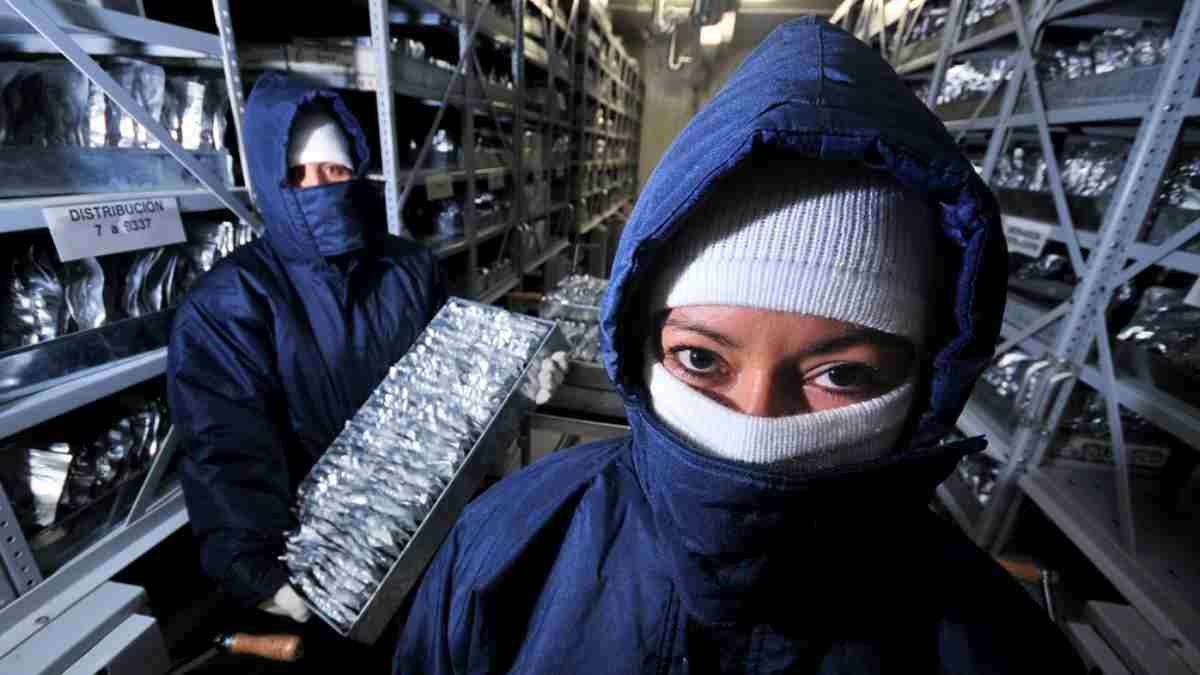 Menos 20° C no banco genético do CIAT, parte do programa de Recursos Genéticos da instituição. ©2010 CIAT/NeilPalmer
