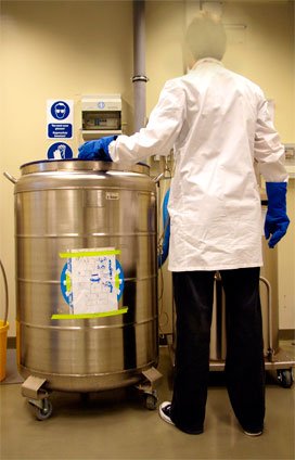 - Criopreservação de células, tecidos, gâmetas e embriões de origem animal e humana com fins médicos e armazenamento a largo prazo. Este processo requere, normalmente, a adição de substâncias que protegem as células durante o congelação e descongelação (crioprotectores).