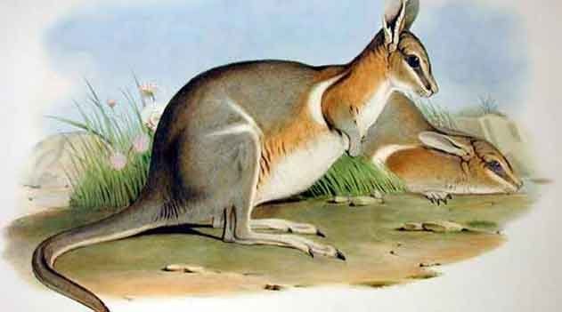 Onychogalea lunata: o Wallaby-rabo-de-prego-crescente era um animal comum em matas da Austrália até a chegada dos colonizadores europeus. Acredita-se que o último exemplar na natureza morreu por volta de 1956, devido à disseminação da raposa vermelha.