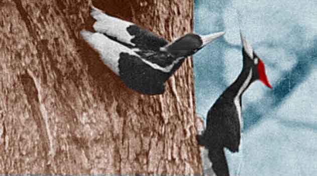 Pica-pau-bico-de-marfim (Campephilus principalis): após um suposto avistamento em 2005, a espécie foi classificada como “criticamente ameaçada” na IUCN, e “definitivamente ou provavelmente extinto” pela American Birding Association. Em 2021 o governo dos EUA declarou oficialmente a extinção do pica-pau-bico-de-marfim.