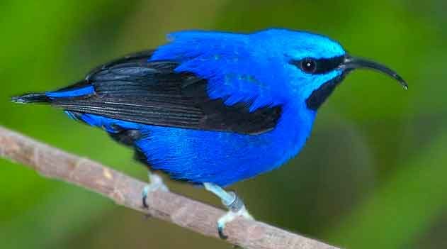 Saí-de-perna-amarela: a cor azul turquesa da plumagem com detalhes negros da Cyanerpes caeruleus a colocou em listas das aves mais bonitas do mundo. Pode ser encontrada principalmente no norte do Brasil, entre outros países da América do Sul.